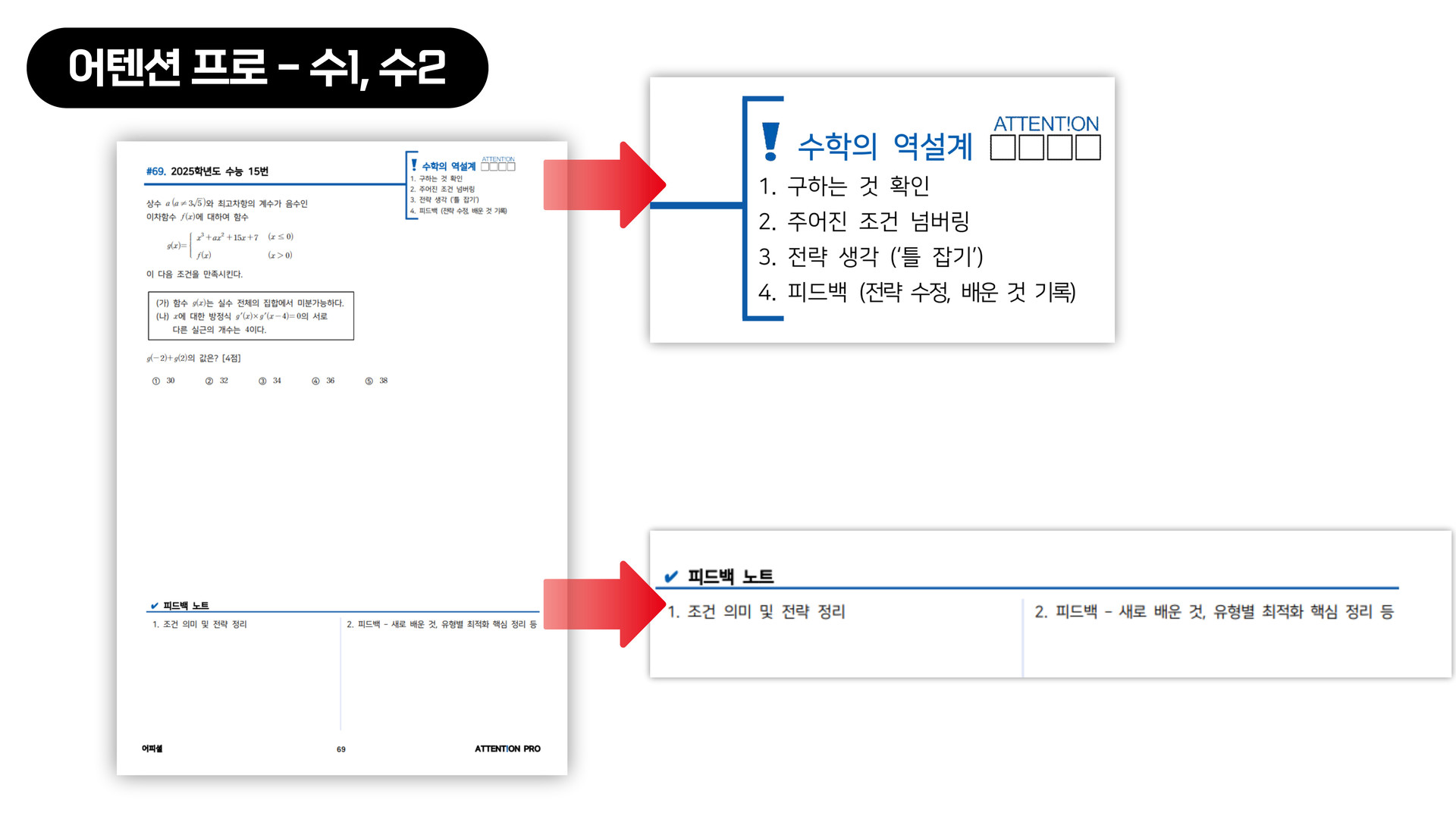✔ 어텐션 프로 (수1, 수2) - 최근 5개년 평가원 4점 문항(공통) 완전 정복 (13·14·15·20·21·22번)